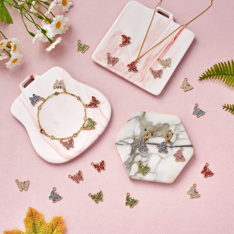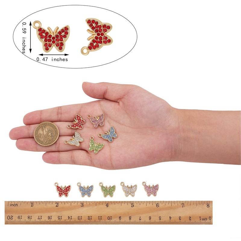 COGCHARGER Pack of 25 Butterfly Rhinestone Charm Pendants Colourful Alloy Butterfly Charm Alloy Pendant for Jewellery Necklace Bracelet Earring Making Crafts