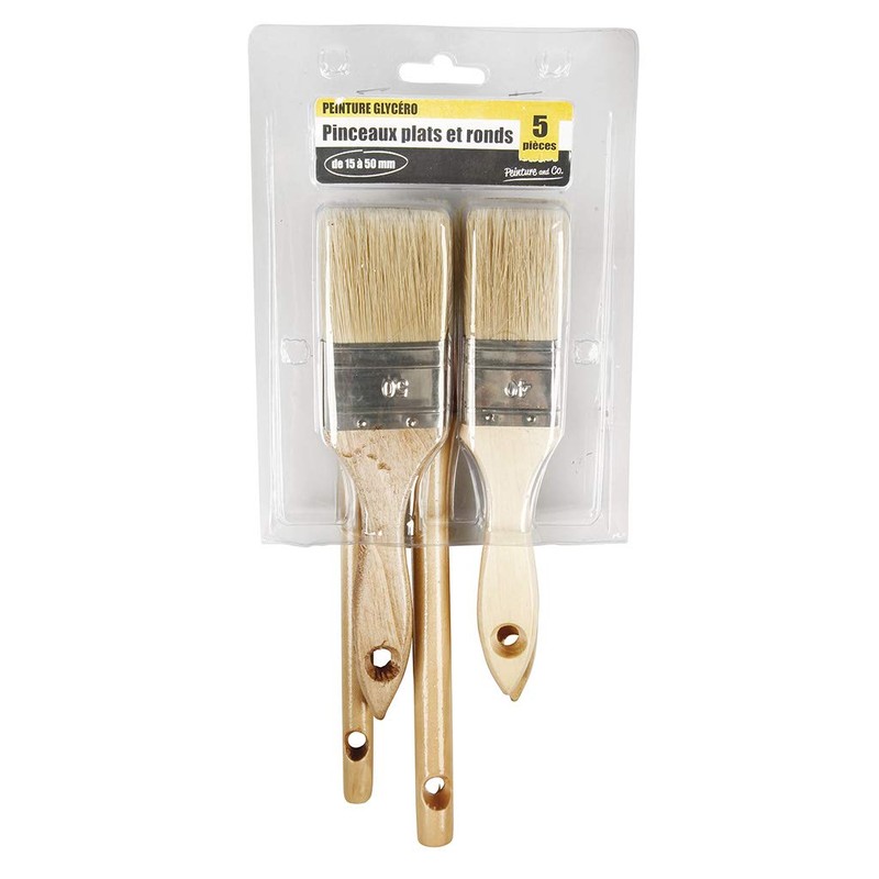 Cogex Pro 58044 Paint Brushes with Wooden Handle Set of 5 (3 Flat Brushes 30/40 / 50 mm + 2 Filbert Brushes 15/25 mm)
