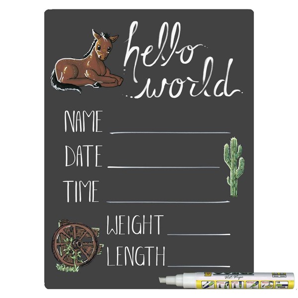 Cohas Hello World Newborn Baby Announcement Chalkboard Sign with Old West Theme, 9 by 12 Inches, White Marker