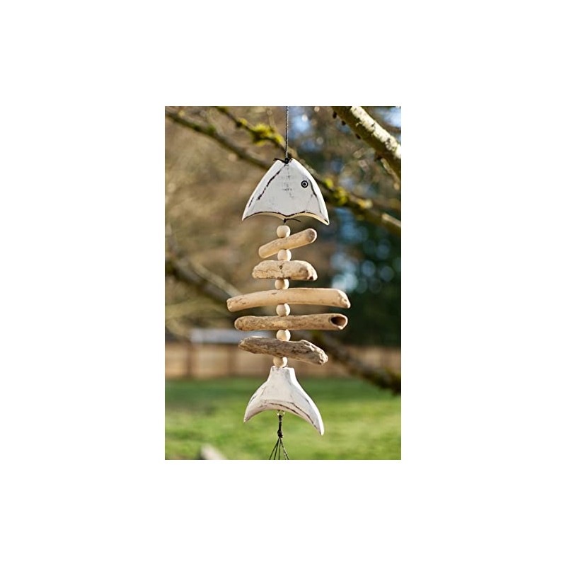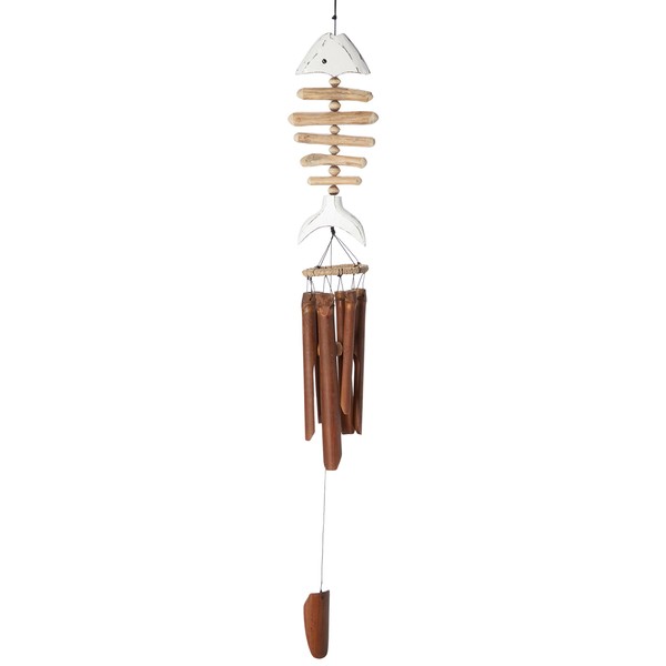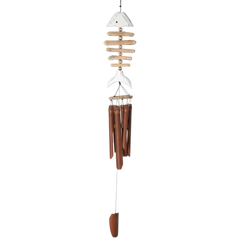 Cohasset Gifts 109W Cohasset Tail Bone Fish Bamboo Wind Chime, Distressed White Finish