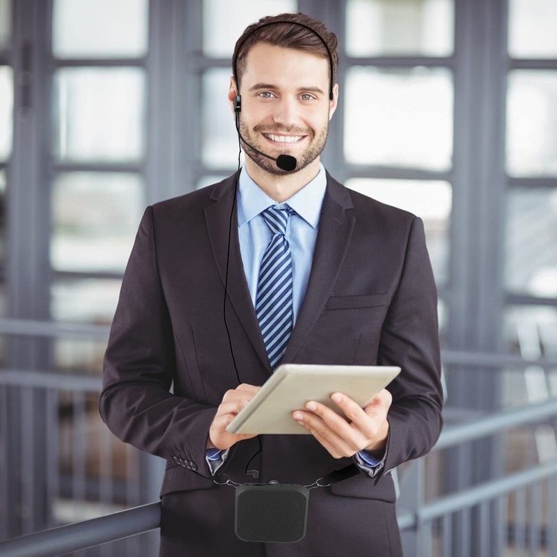 Wireless Connection Speaker The sound quality is superb, and fine workmanship with incredible details could be seen everywhere.Street Vendor Amplifier You could wear it and have both of your hands free for other tasks.Amplifier with Microphone The mini voice amplifier's sound effect is cleat and loud, easier to amplifies and saves your throat