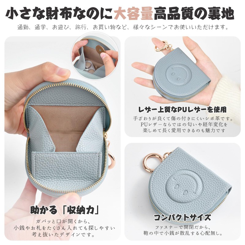 - (Cute and mature design) This mini pouch has a high level of elegance and an elegant impression. The gold-colored zipper and leather texture create an elegant look. Palm-sized to fit in your bag. In addition, it opens wide to reveal contents at a glance. Reliable zippers and lining for durability and longevity. Made of fine leather. Textured grain leather that is scratch resistant