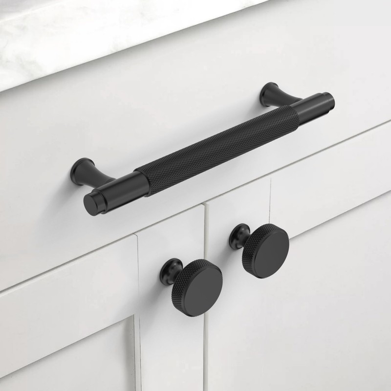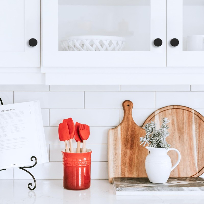 Coinkoly 10 Pack 1-1/5"(30mm) Matte Black Knurled Cabinet Knobs for Dresser Kitchen Knobs for Cabinets Single Hole Cabinet Pulls Hardware