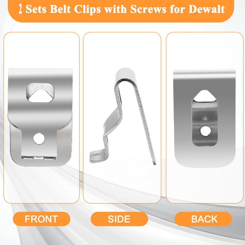 COITEK 2Pcs Belt Clips For Dewalt, 304 Stainless Steel Hook Clips Drill Clips Tool Kit With Screws Belt Replacement for Dewalt N268241 Fit for 20V Power Tools DCD980 DCD980L2 DCD985L2 DCD985