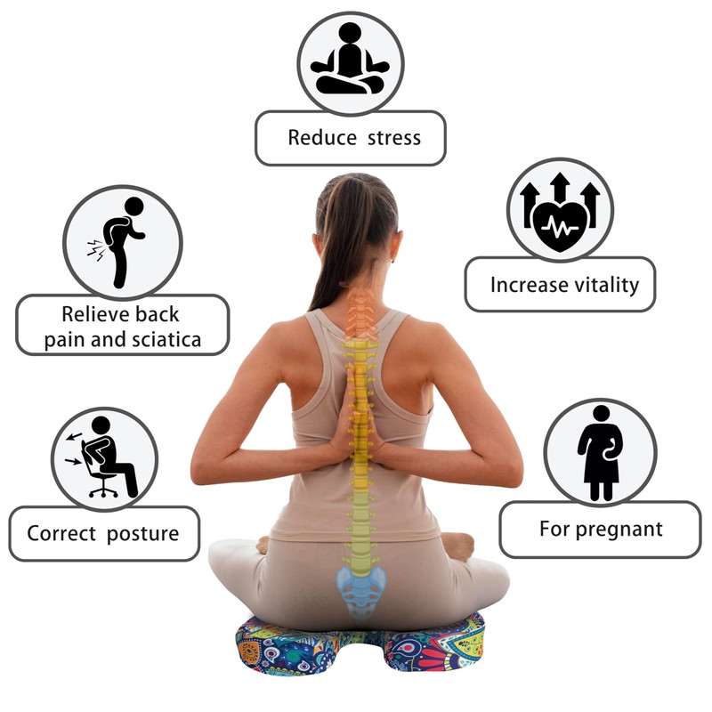 - Múltiples usos: este cojín ayuda a aliviar problemas espinales como dolor de espalda baja, hernia discal, lesiones de coxis y ciática. También se adapta a múltiples tipos de sillas como sillas de oficina, sillas de computadora del hogar, asientos de coche, sillas de juegos, scooters de movilidad, asientos de automóviles y sillas de ruedas. También puede ofrecer comodidad adicional durante viajes, eventos deportivos o embarazo.