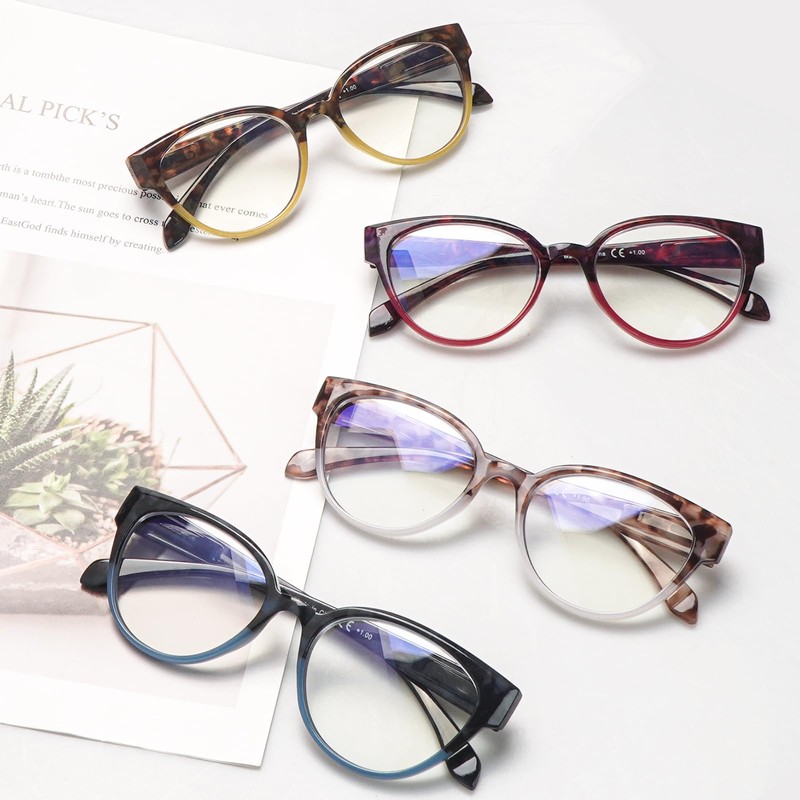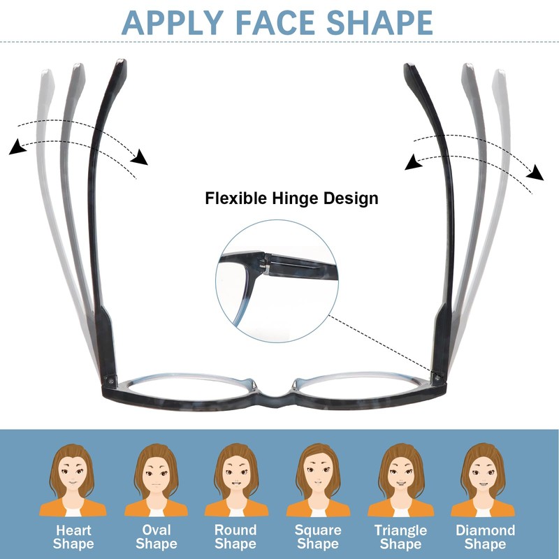 • EXCLUSIVE DESIGN - Progressive blue light reading glasses have large oval lenses in trendy colors that not only help with reading, but also contour to your face (between oversize and regular eyeglasses sizes)