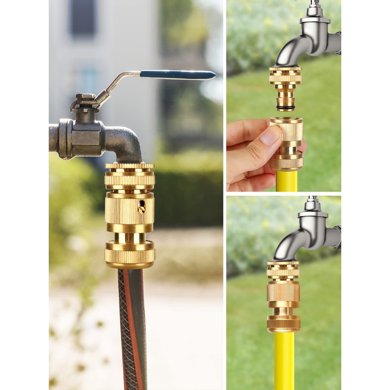 - Brass material, no leaks: hose connectors are made of impact-resistant brass. The solid and durable material extends the life of the connector. It is weatherproof, does not rust or break as easily as plastic. It is waterproof, durable and easy to connect and disconnect.