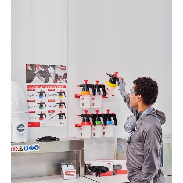 Wall Bracket Art.no. 970506 Specifications Organize your workshop. 2 pcs and connectable. Dimensions L x W x H (cm): 38 x 16.6 x 1.70 cm. Use the Colad Wall Bracket To hang the Pump Spray on and have a central place for fluid identification. Benefits of Wall Bracket Organize your workshop Connectable Fluid identification