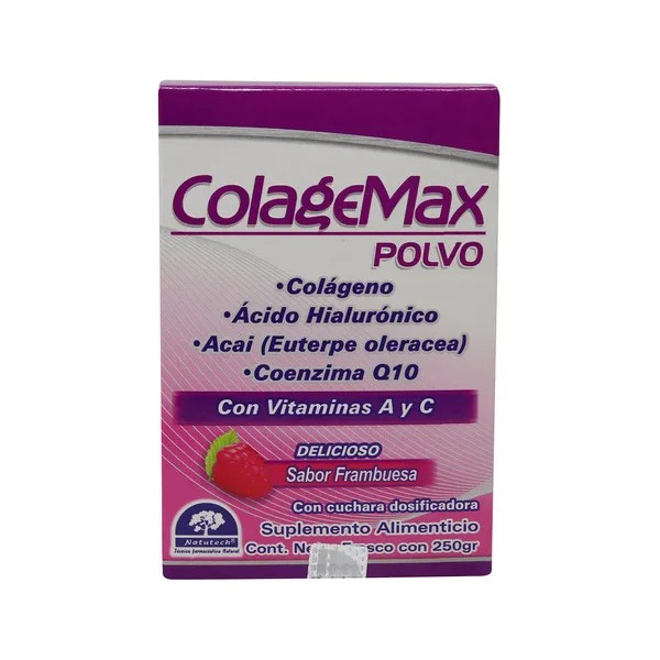 El producto que presentamos es el Colage Max en Polvo, una fórmula innovadora de la marca Natutech. Este suplemento alimenticio combina colágeno y ácido hialurónico, junto con coenzima q10, ingredientes conocidos por sus beneficios para la salud y la belleza. Con un delicioso sabor a frambuesa, este producto es libre de gluten y no contiene lactosa, lo que lo hace ideal para personas con dietas especiales. Aunque no es vegano, es un suplemento principal para aquellos que buscan mejorar su nutrición. Recomendado para personas mayores de 18 años, este producto viene en un frasco de 250 gramos, con una porción sugerida de 25 gramos. A pesar de su potente combinación de ingredientes, no aporta calorías, lo que lo convierte en una excelente opción para quienes buscan mantener su peso. El formato en polvo facilita su consumo, solo necesita mezclarlo con su bebida favorita. Cada paquete contiene una unidad, lo que facilita su almacenamiento y transporte. Producido en México, este producto es una excelente opción para cuidar de tu salud y bienestar.