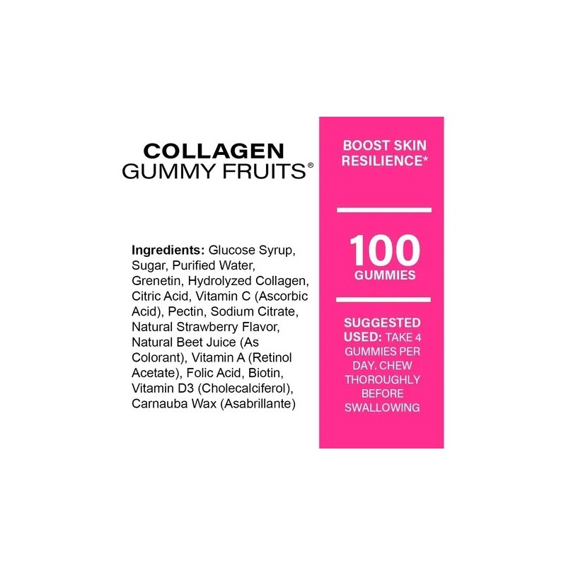 Descripción Limpia: Las gomitas de Colágeno más Biotina te ayudarán al cuidado de tu piel, crecimiento de uñas y fortalecimiento de tu cabello. Sabemos que cuidas tu apariencia en serio y por eso creamos Naturelab Colágeno más Biotina, un multivitamínico especialmente formulado para embellecer tu cuerpo de adentro hacia afuera.