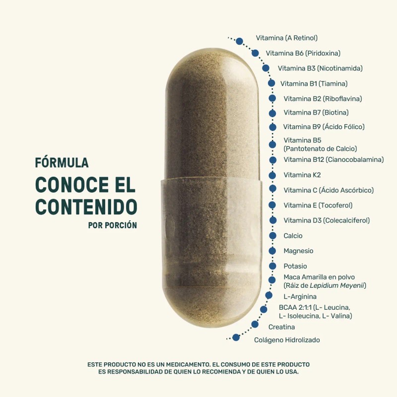 COMPOSICIÓN: Life 360+ Men M4TUR3 es un suplemento alimenticio que contiene Colágeno, Creatina, L-Arginina, Maca, BCAAs (L-Leucina, L-Isoleucina, L-Valina), Vitaminas y Minerales como ingredientes dentro de la formulación del producto.