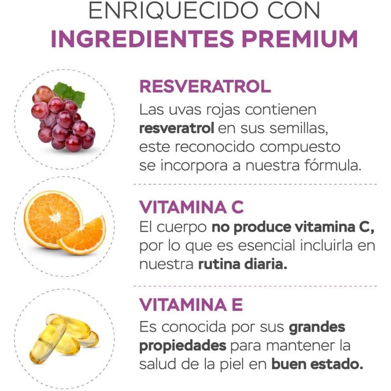 - Piel, Cabello y Uñas Radiantes: Fórmula enriquecida para mejorar la elasticidad de la piel, fortalecer el cabello y las uñas desde adentro.