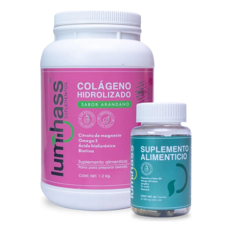 El Colágeno Lumihass sabor arándano es un suplemento nutricional formulado para fortalecer articulaciones, mejorar la elasticidad de la piel y promover el crecimiento saludable de uñas y cabello. Gracias a su presentación en delicioso sabor arándano, es fácil de tomar y se convierte en parte de tu rutina diaria sin esfuerzo.