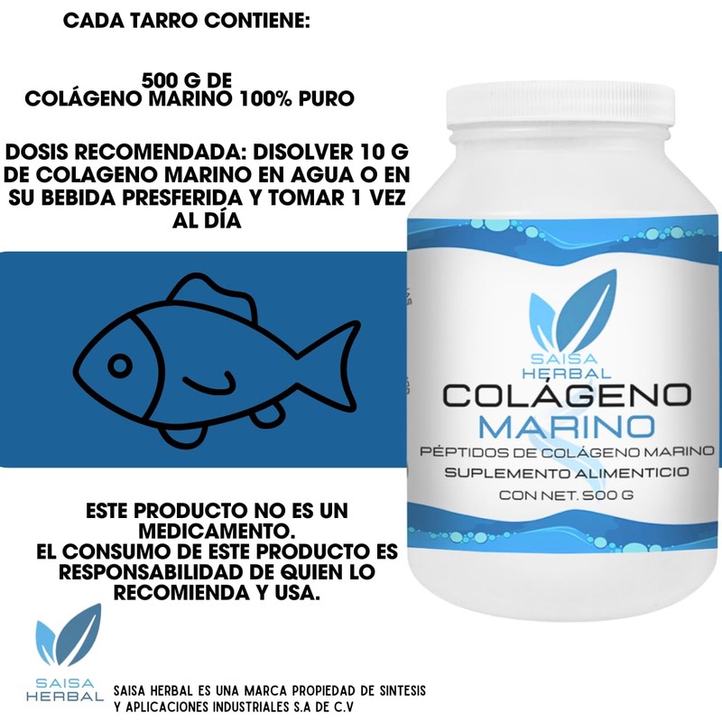 Colágeno Marino Péptidos De 500 G 100% Puro. Saisa Herbal