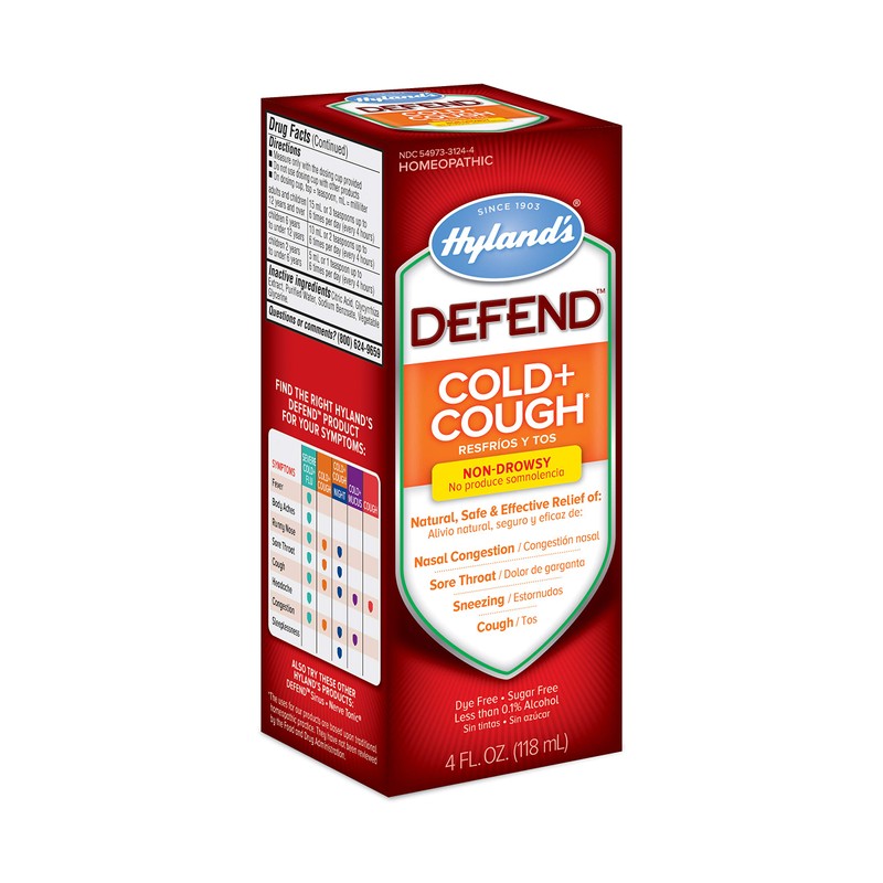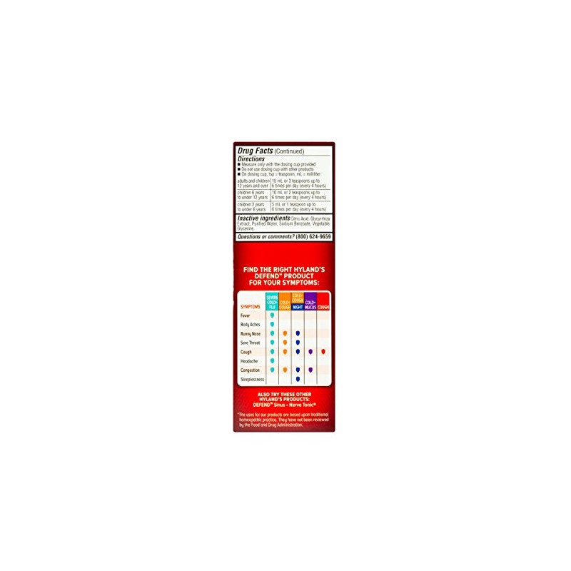 - 4 OUNCE= UP TO 24 DOSES: of Hyland's DEFEND Cold + Cough
