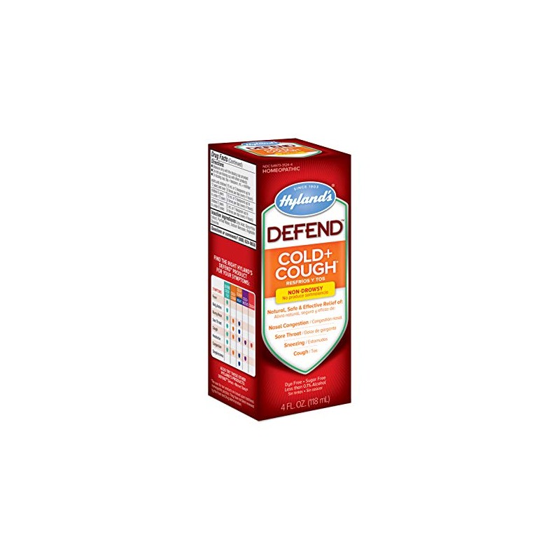 Cold and Cough Medicine by Hyland's Defend, Non-Drowsy, Syrup for Dry Cough, Decongestant, and Sore Throat Relief, Natural Cold Medicine for Adults, 4 Oz