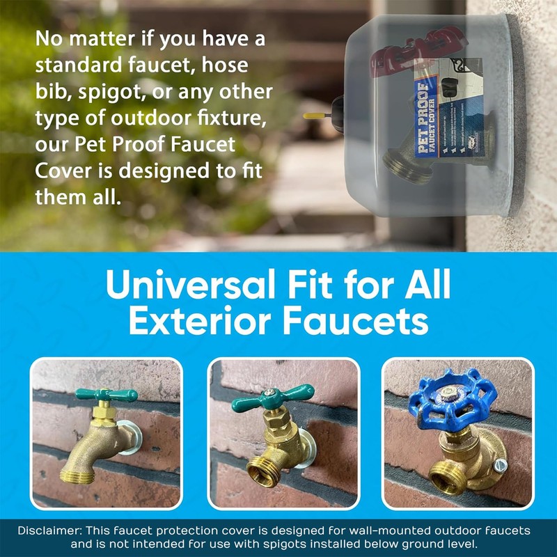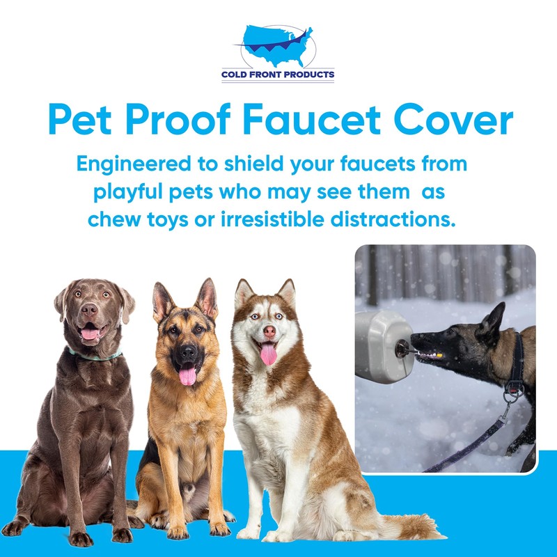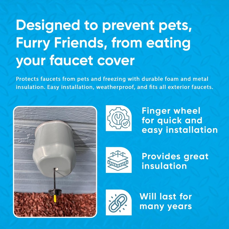 - PET-FRIENDLY FAUCET PROTECTION: This faucet cover is thoughtfully designed to help prevent pets from tampering with or chewing on your exterior faucets. Its sturdy construction helps to keep your faucets secure and out of reach from curious pets. A practical solution for pet owners looking to protect their outdoor plumbing from potential pet-related damage.
