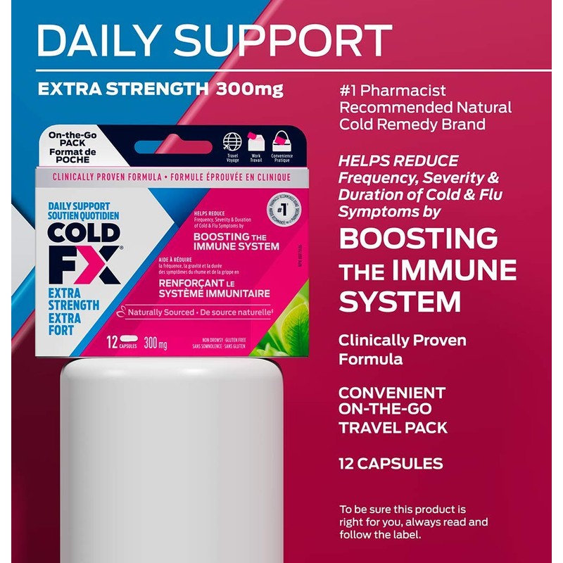 - COLD & FLU SUPPORT: The COLD-FX Daily Support you depend on but with 50% more of the active ingredient in each capsule; COLD-FX Extra Strength helps reduce the Frequency, Severity and Duration of cold and flu symptoms by Boosting the Immune System
