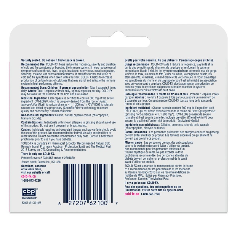 - #1 PHARMACIST RECOMMENDED*: COLD-FX is Canada's #1 Pharmacist Recommended Natural Cold Remedy Brand