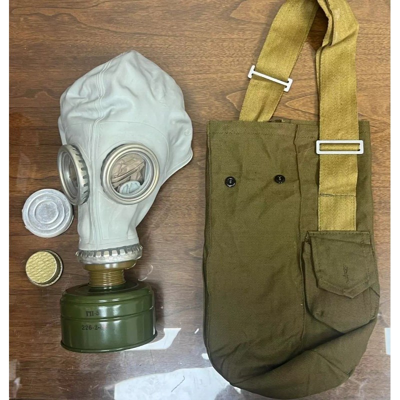 Cold War Russian GP5 Gas Mask, Includes Detachable Filter and Burlap Sack