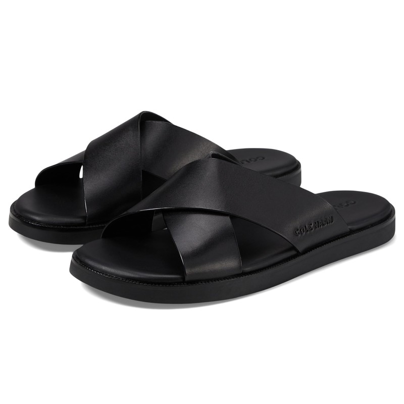 Cole Haan Men's Nantucket Cross Strap Sandal, Black/Black, 11