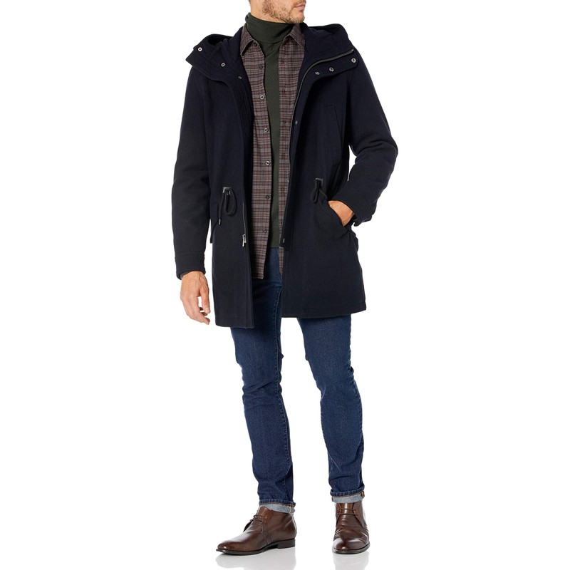 Cole Haan Men's Wool Melton Anorak, Navy, Large