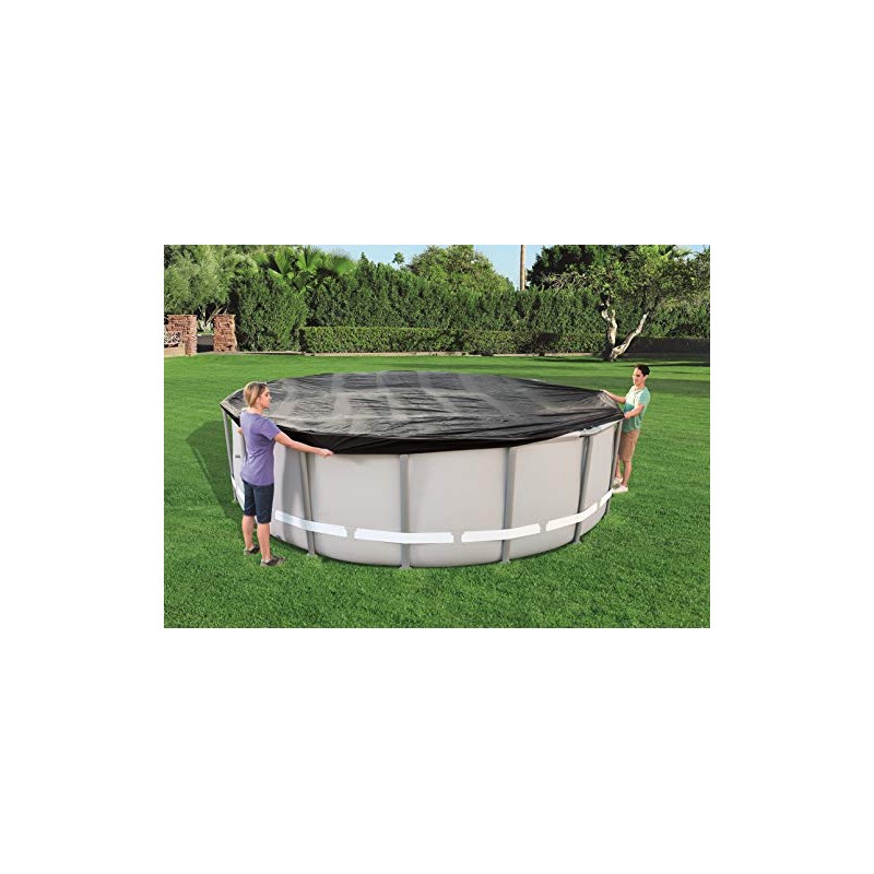 - PROTECTS POOL FROM DEBRIS: Covering your above ground swimming pool with a Bestway pool cover minimizes debris, leaves, and trash from getting into your pool. It also protects the pool line from UV, snow, and ice damage.