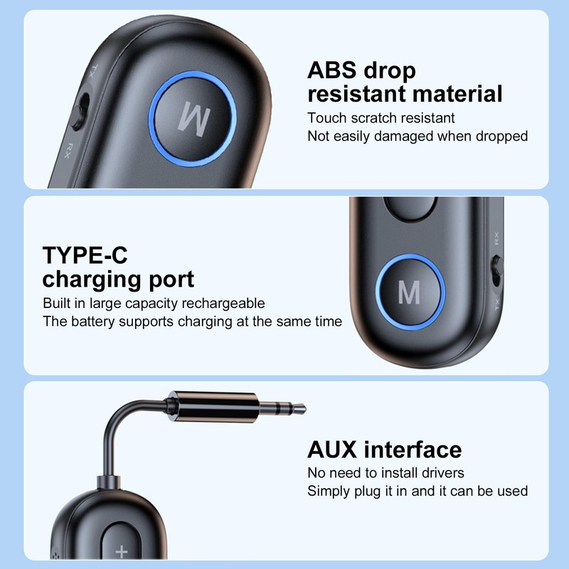 - Im Empfängermodus wird kabelgebundenen Lautsprechern oder Heimstereosystemen Bluetooth Funktion hinzugefügt.