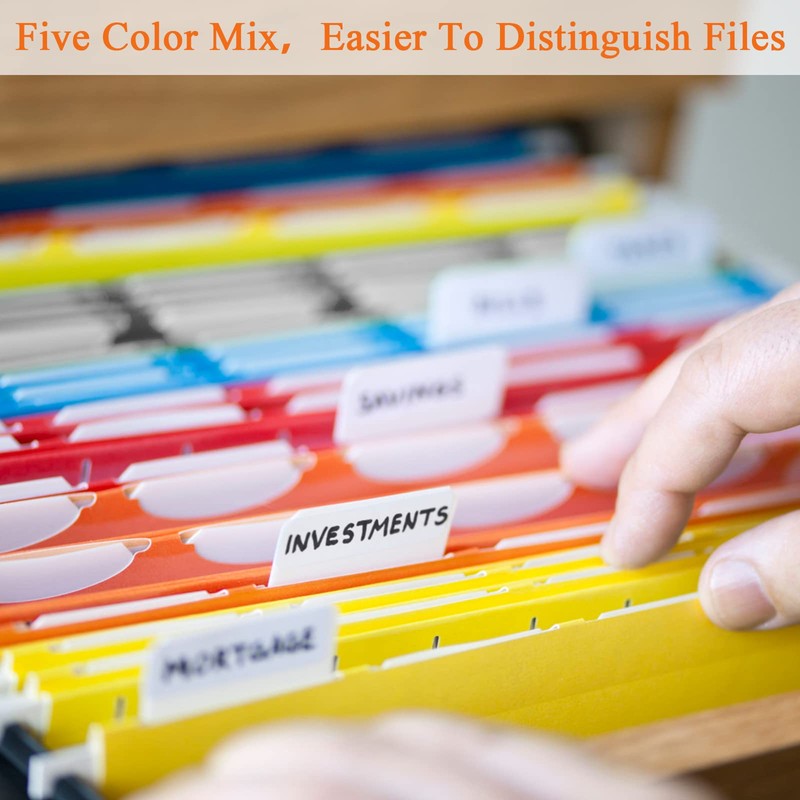 - Packing List The package includes 10 hanging files in 5 eye-catching colors, two of each color. Comes with 10 card label inserts.