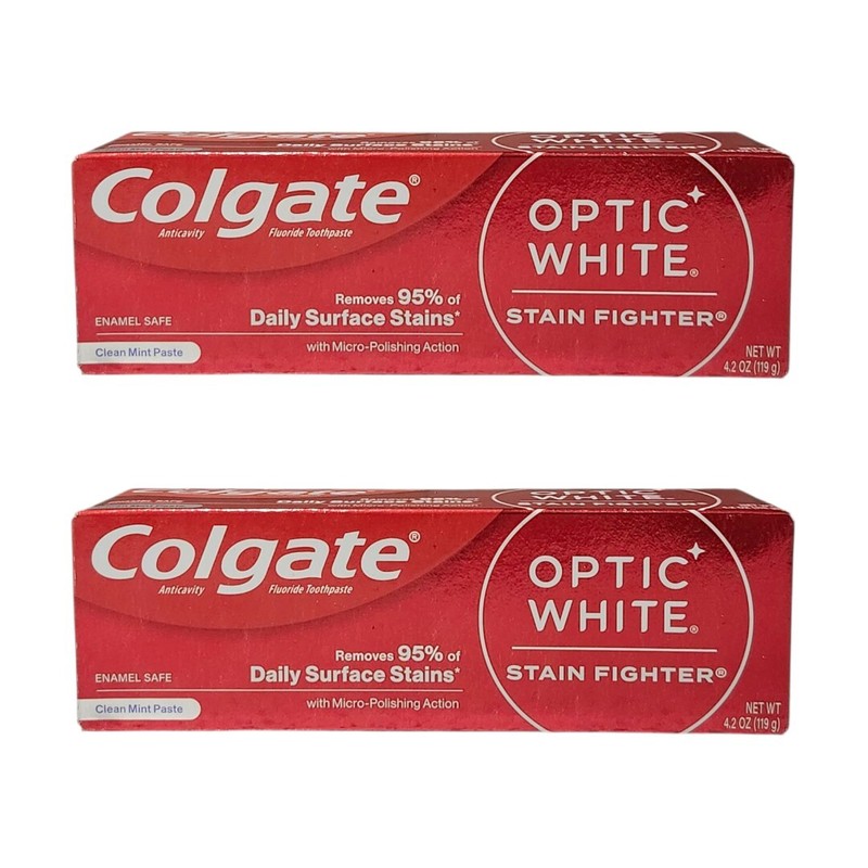 Colgate Optic White NEW / SET OF 2  Colgate Optic White Stain Fighter 4.2 oz Clean Mint Paste Each