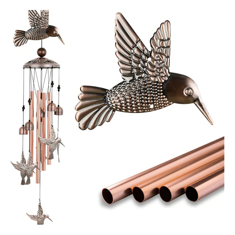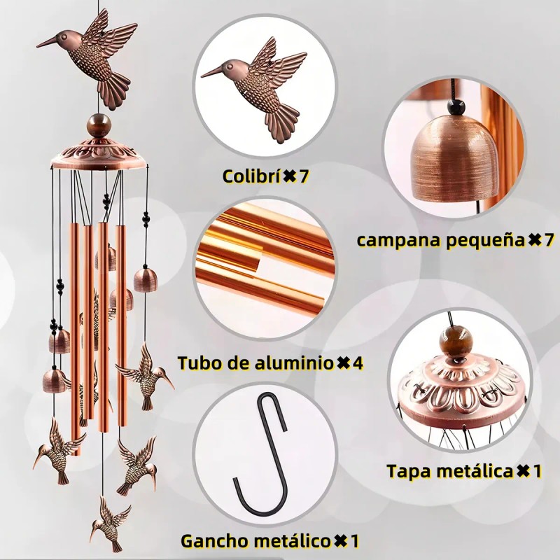 Carillón de viento para exterior, tubo de aluminio tipo colibrí con gancho en S, decoración de patio y jardín, regalo de inauguración de casa.