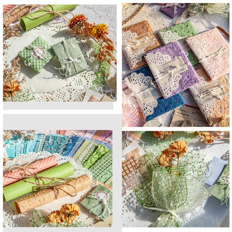 Collage Material Assortment Seal Design Paper Material Paper Paper Background Paper Mesh Fabric Lace Fretime Japanese Style Stylish Material Paper Pack Large Capacity Retro Background Paper Paper
