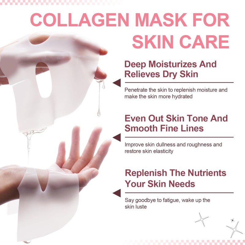 - DEEP NOURISHING MOISTURIZING:Collagen sheet mask can effectively replenish the collagen needed by the skin,it quickly hydrates the skin's surface and penetrates deeper layers,Increase skin elasticity and radiance