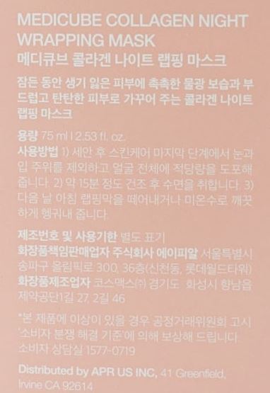 Collagen Night Wrapping Mask 75ml 1ea Elasticity and Glow Care Medicube Shumyeon Pack Lifting Pack / 콜라겐 나이트 랩핑 마스크 75ml 1개 탄력광채 케어 메디큐브 슈면팩 리프팅팩
