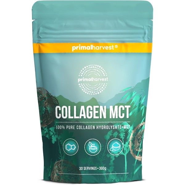 Collagen Powder by Primal Harvest - Bioactive Premium Collagen Complex, Sustainable Grass Feeding, Collagen Hydrolysate, Tasteless, Optimal Solubility (Primal Collagen MCT (Pack of 1)