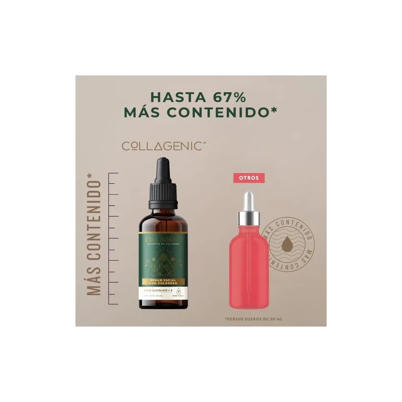 Collagenic – Sérum Facial Efecto Peeling con Ácido Glicólico, Colágeno Hidrolizado y Ácido Hialurónico para Renovación Celular y Luminosidad (50 ml)