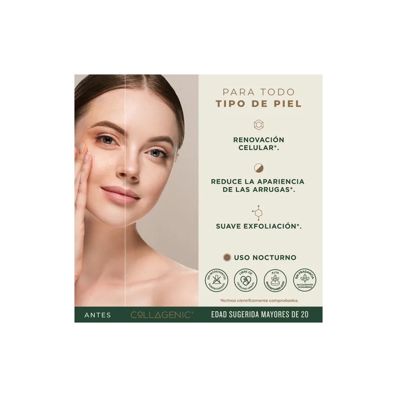 Ingredientes clave: Ácido glicólico, colágeno hidrolizado, ácido hialurónico, aloe vera