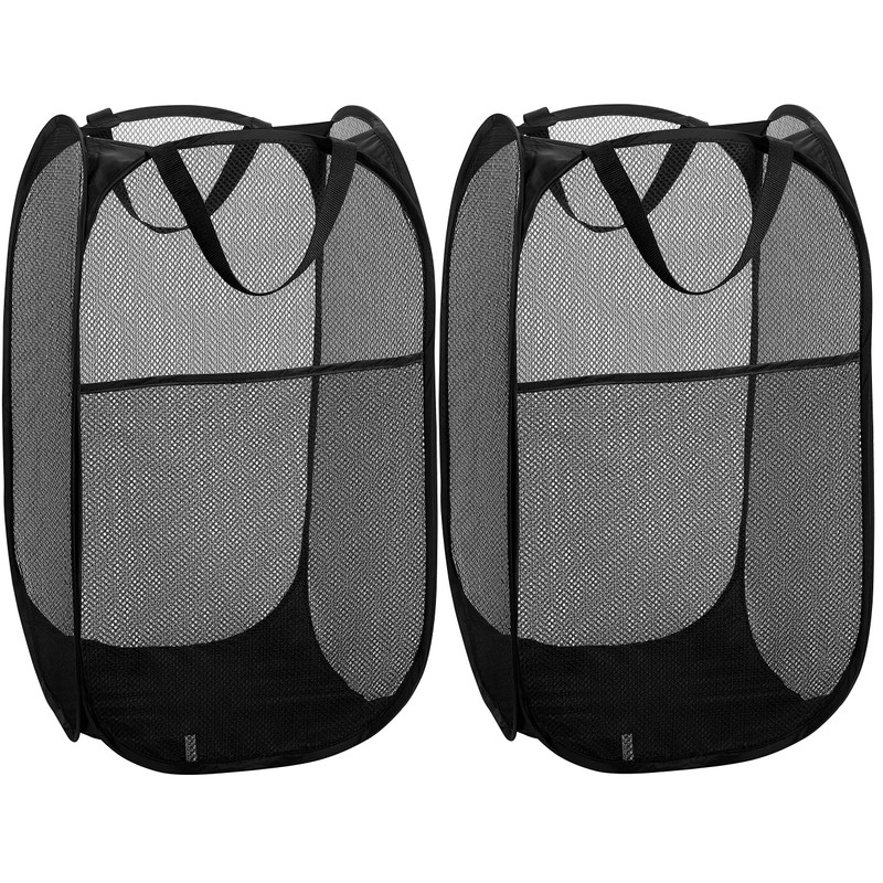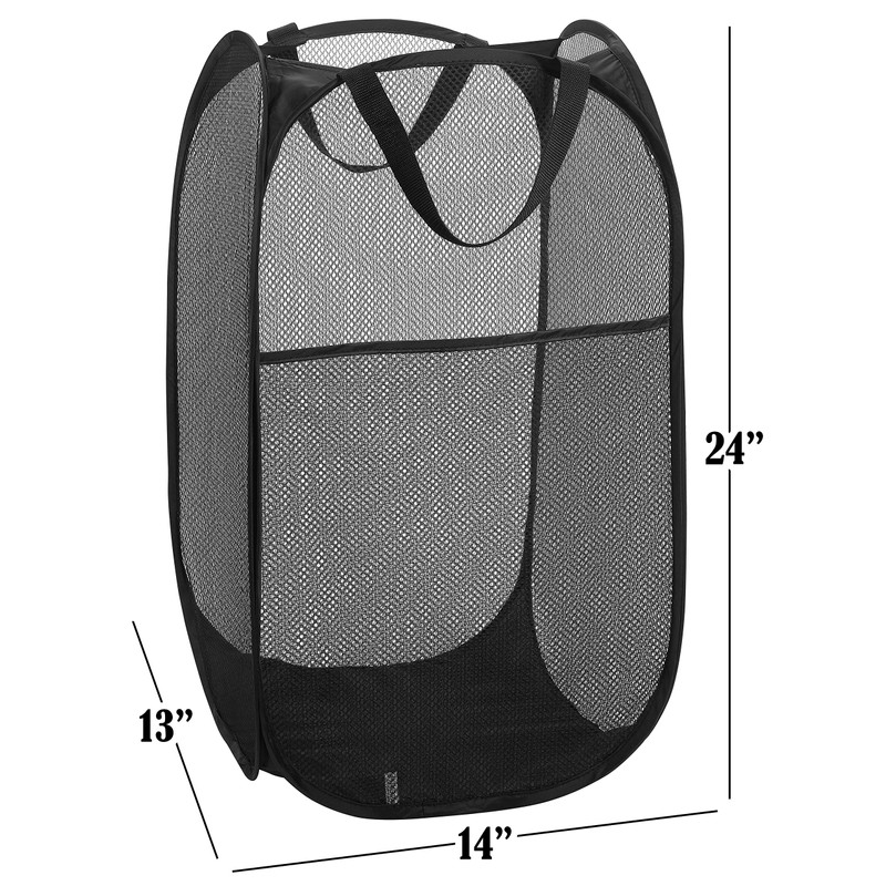 Collapsible Mesh Pop Up Laundry Hamper with Wide Opening and Side Pocket – Breathable, Sturdy, Foldable, and Space-Saving Design for Laundry Clothes and Storage. (Black | 2-Pack)