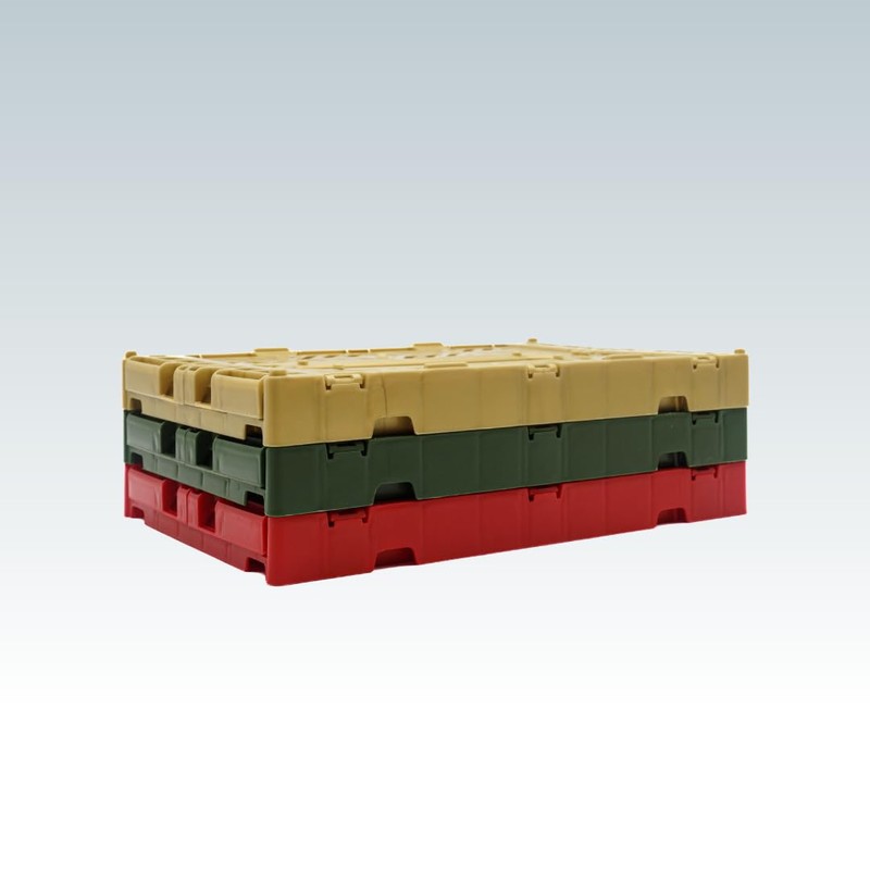 - Compact & Stackable: These crates are designed to stack easily, allowing you to maximize your storage space. When not in use, they fold down flat, taking up only 20% of their original space.
