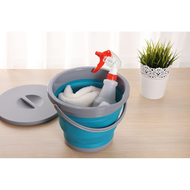 Collapsible Water Bucket with Locking Lid Multifunction Foldable Round Tub Water Pot Portable Water Pail Space Saving Water Container for RV, Camping, Marine, Outdoor Activities and HOM (Blue)
