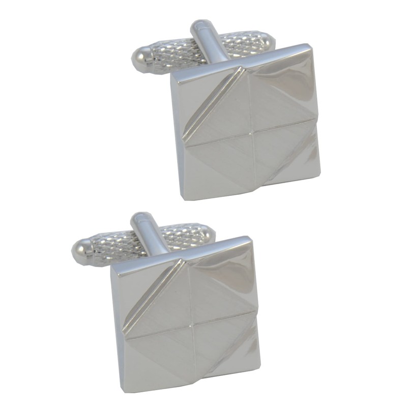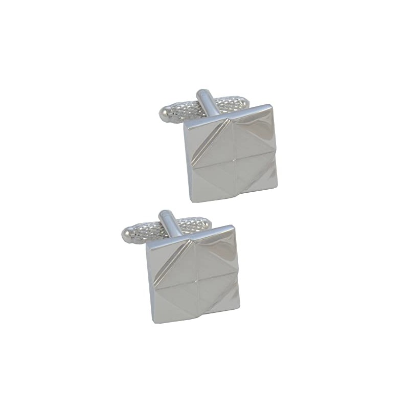 COLLAR AND CUFFS LONDON - PREMIUM Cufflinks with PRESENTATION GIFT BOX - Square with Inner Diamond Shape Design - Solid Brass - Geometric Pattern - Silver Colour
