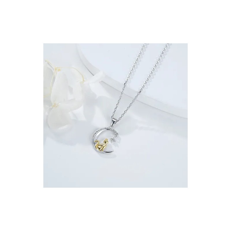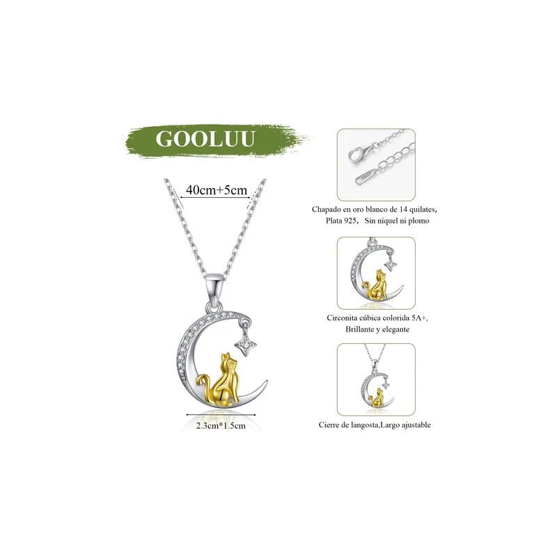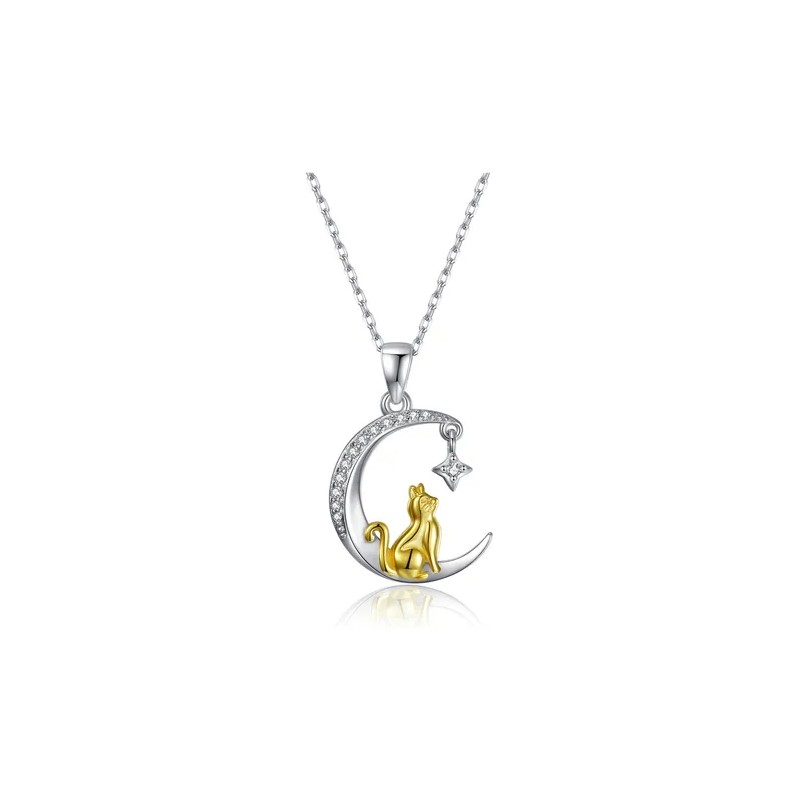 Collar Con Dije De Plata 925 Gato Luna Para Mujer