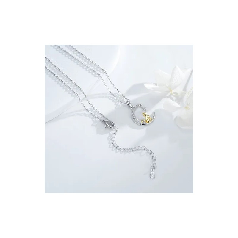 Bonito diseño de gato y luna, este collar con colgante de plata de ley será un verdadero punto culminante para todas las mujeres. Se puede usar todos los días para un look informal y combinarlo con el colgante del collar a juego para completar su atuendo.
