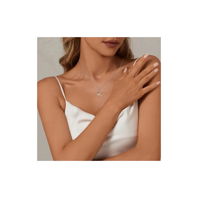 Collar Con Dije De Plata 925 Gato Luna Para Mujer Regalos Plateado