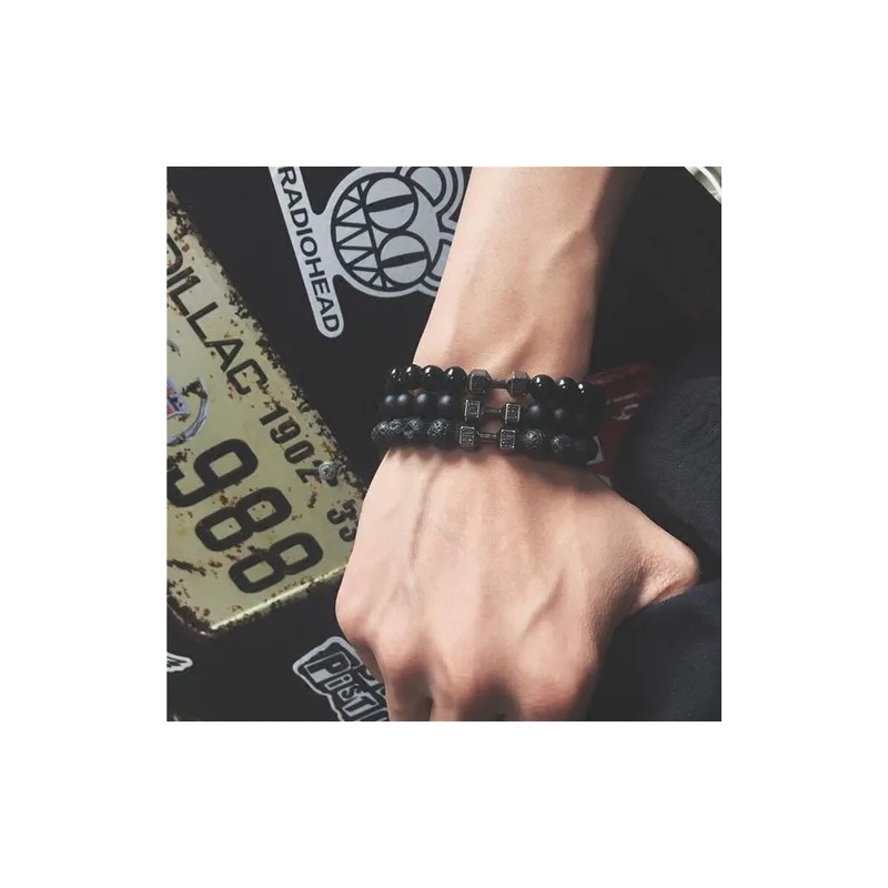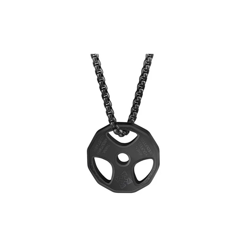 Collar Con Dije Disco Pesas Y Pulsera Mancuerna Acero Inoxidable Gym Fit Negro