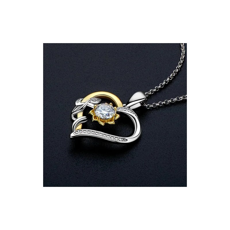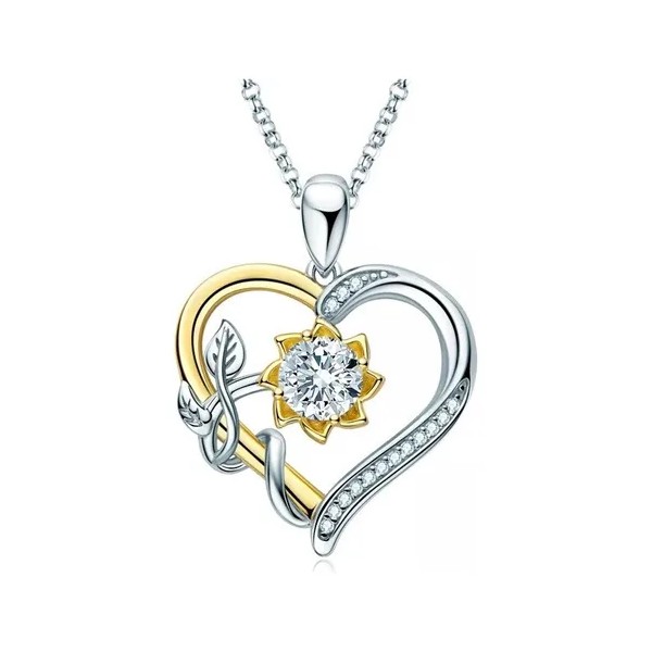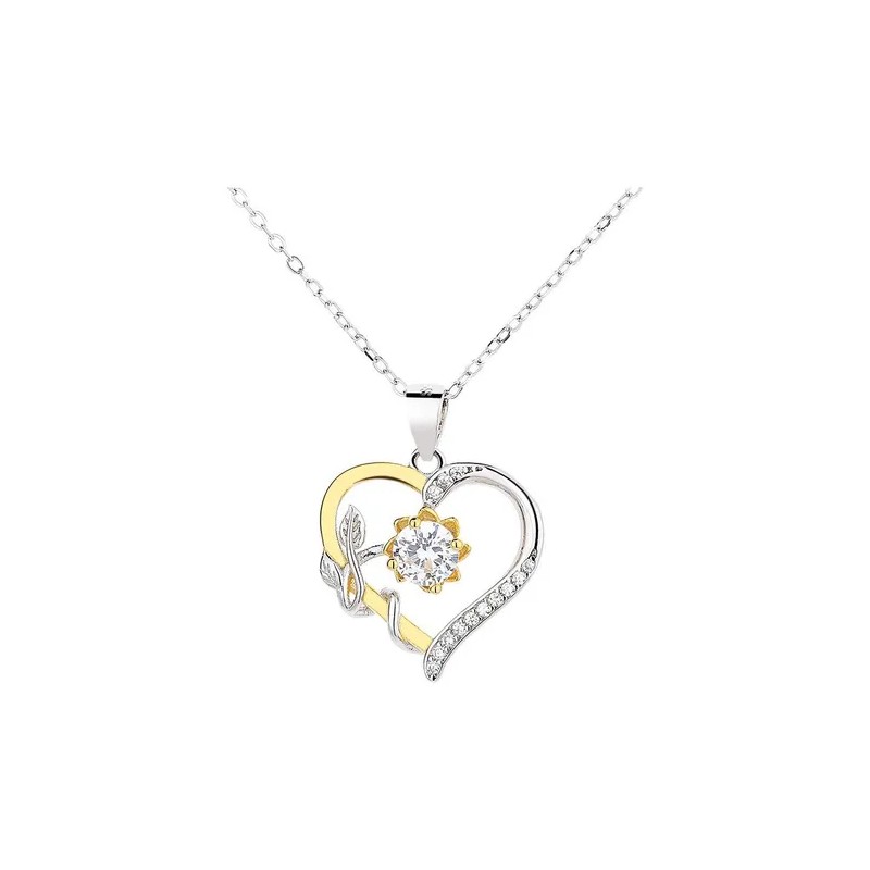 Collar Corazón Girasol Flor Amor Plata 925+ Oro+ Diamante Cz