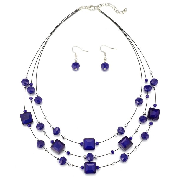 Collar de abalorio de plata en capas para mujer, abalorio cuadradas de vidrio, collar y aretes, conjuntos de joyería para mujer, Cristal, Sin piedra preciosa