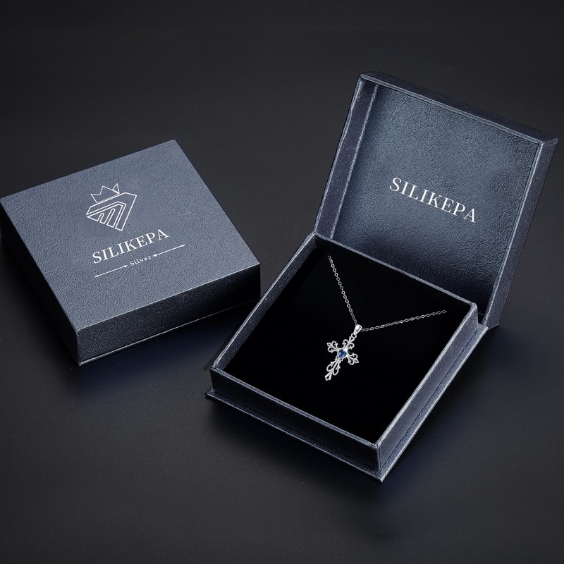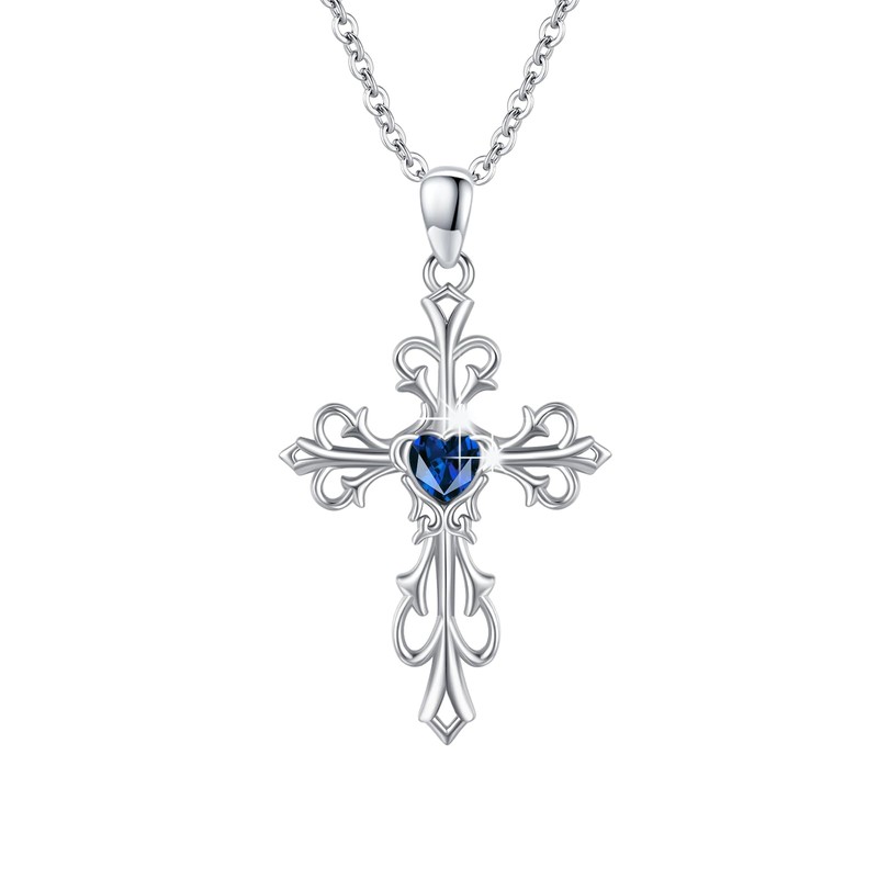 | Color: | Collar de cruz con piedra preciosa de corazón de 12 meses (topacio azul septiembre) |