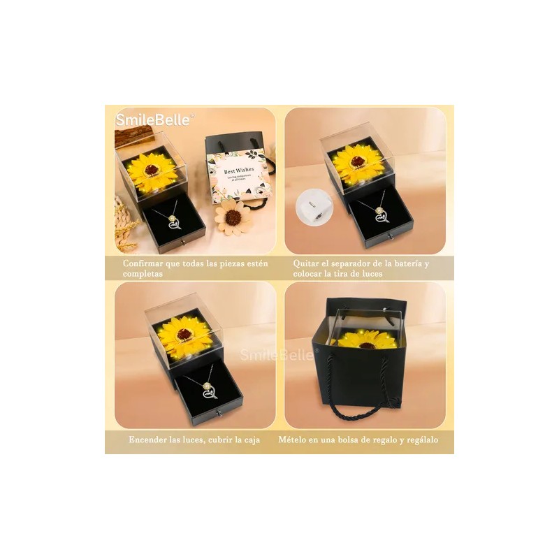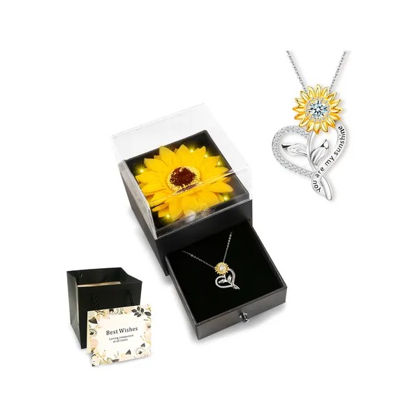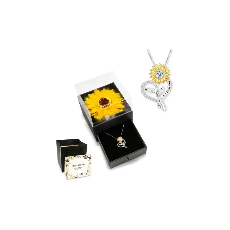TAG: Caja de regalo de girasoles, girasol eterno, girasol, collar de dama, regalo, regalo para mujer, SmileBelle, collar de madre, joyas, accesorios de acero inoxidable, cadena, plata, regalo para madre, accesorios de mujer, girasol de perfume, Regalo de San Valentín, Regalo del Día de la Madre