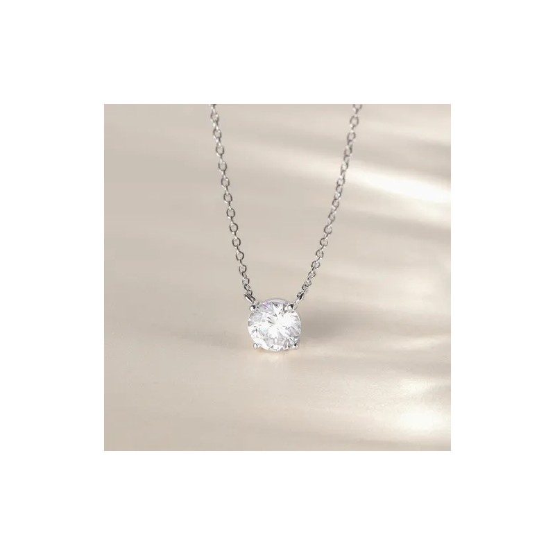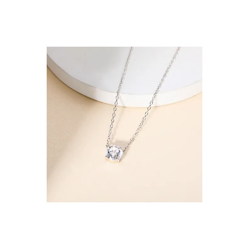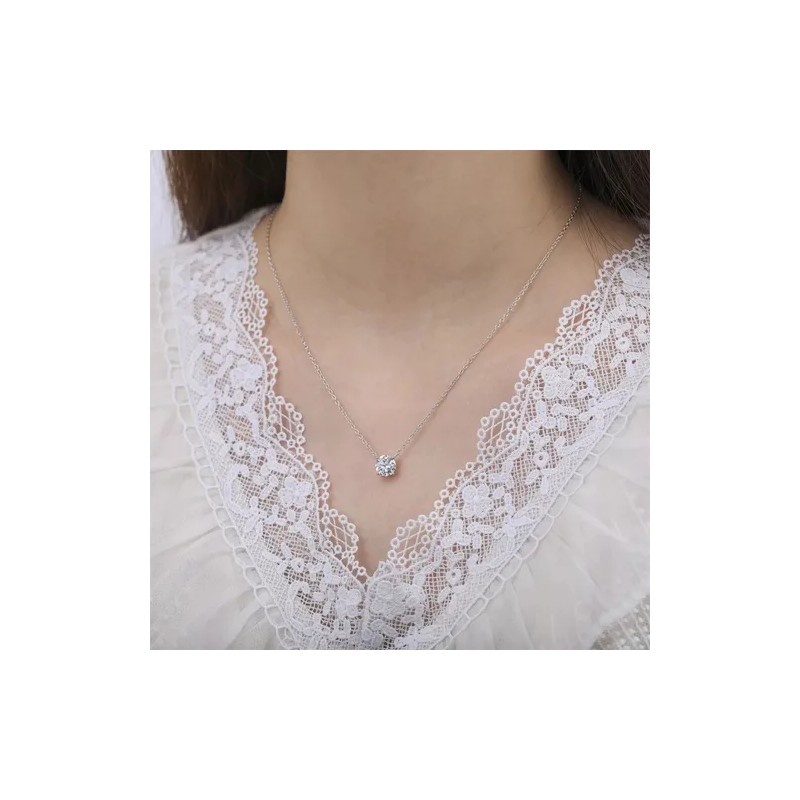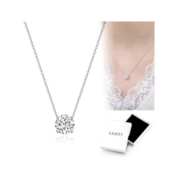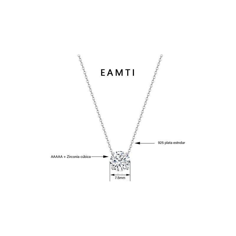 Collar de plata esterlina mujer 925, exquisita cadena fina con Zirconia cúbica de 7,5 mm incrustada en cuatro patas. Brillando al sol, el colgante es más lujoso y elegante. El collar único de plata esterlina le hace lucir particularmente exquisito y brillante.